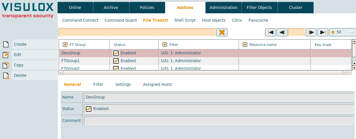 New File Transfer groups can be created and existing groups can be edited, copied or deleted.