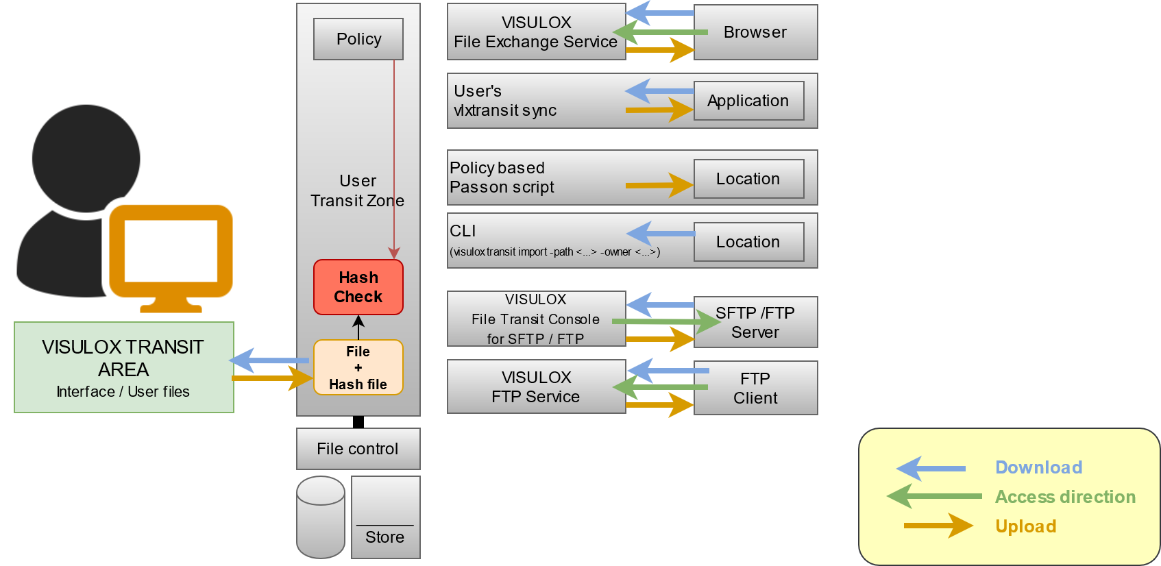- Hash check ban be enabled for files transferred in (client → Transit Zone → server) and out (server → Transit Zone → client) of the environment