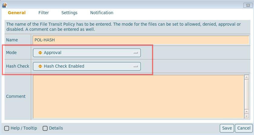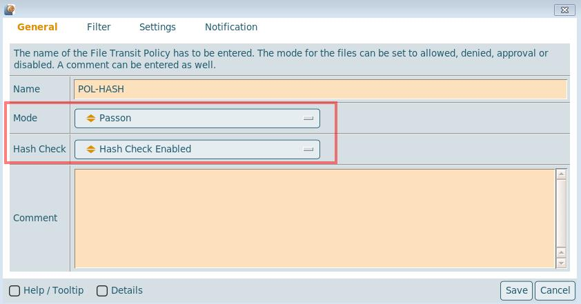 The policy mode "Passon with approval", which is a combination of passon and approval can also be used with hash check enabled.