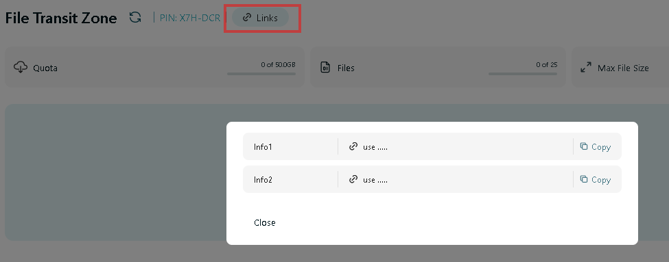 The transit URL must be known by the File Exchange users and is displayed via the Links button in Workspace / Transit Zone.