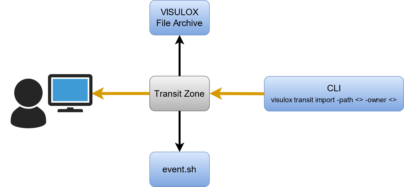 The visulox transit command can be used to copy files into the Transit Zone of another user. A standard Transit Policy is applied.