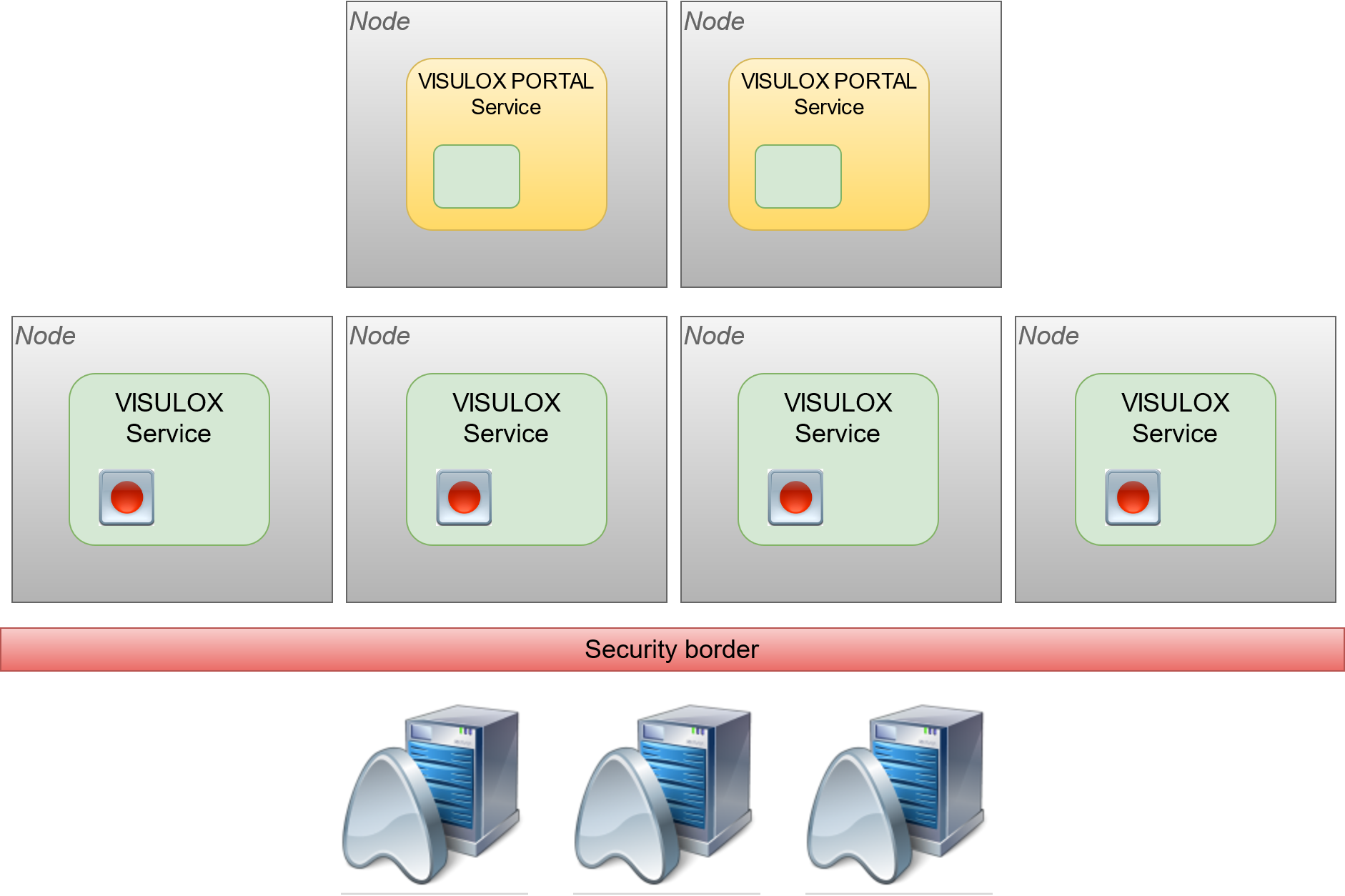 A VISULOX application server provides: LINUX user shell access, Firefox, Citrix and RDP integration with VISULOX File Transfer facility. The VISULOX application server can be implemented anywhere in the network, but needs communication with all other VISULOX Nodes. |