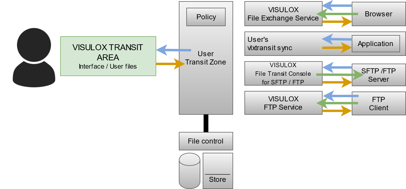 The heart of the VISULOX File Transfer is the user's Transit Zone. Every file a user transports in or outbounded is passing the Transit Zone.