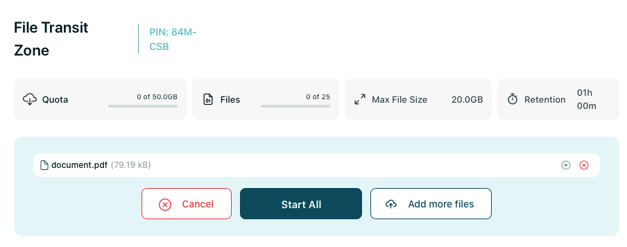 Using the "Start All" button, the files will be uploaded to the Transit Zone.