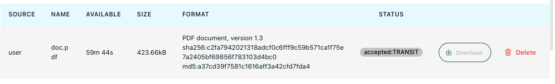 Now the user is able to upload and download files from the Transit Zone. ((warning) The File Exchange service has to be enabled by the administrator).
