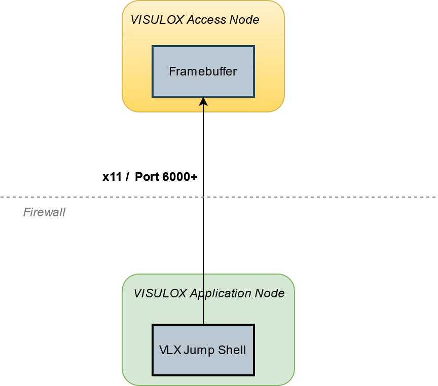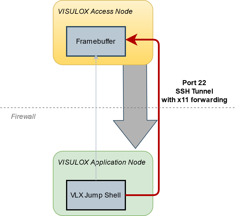 | x11-offset/6000+ | TCP | VISULOX Cockpit, Jump Shell, Command Connect, Command Guard or FT Client always use a VLX transituser. If one of these programs is used on another server, it is necessary that this server is able to communicate via X11 native (port 6000+). For example a VISULOX Archive Server will need this port open. See also: VISULOX SSH X11 Forwarding to VISULOX Application Nodes |
